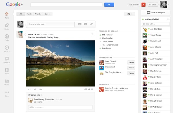 Обновления Google+ касаются не только навигации, Ленты и Видеовстреч. Например, теперь в Google+ есть страница “Обзор”, которая показывает, что интересного происходит за пределами кругов, фотографии в Ленте стали больше, а чат теперь гораздо более заметен и доступен с любой страницы. Обновления будут появляться у пользователей в течение следующих нескольких дней, поэтому если вы не увидите их сразу, просто проверьте чуть позже.