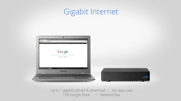 Google предлагает три варианта подключения - Gigabit Internet, Free Internet и Gigabit + TV. Первый вариант с контрактом на один год, обеспечивающий безлимитный доступ на максимальной скорости, обойдется в 70 долларов в месяц, при этом пользователи получат роутер Network Box с четырьмя портами гигабитного Ethernet и 802.11n Wi-Fi, кроме этого дают бесплатное пространство на Google Drive в 1 ТБ. В принципе предусмотрена и первоначальная плата за подключение - 300 долларов, но пока она не будет взиматься.