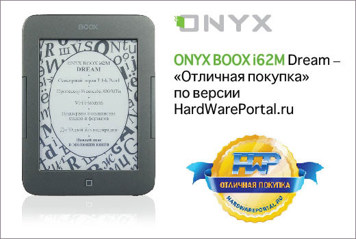 HardWarePortal.ru признал модель ONYX BOOX i62M Dream «Отличной покупкой»