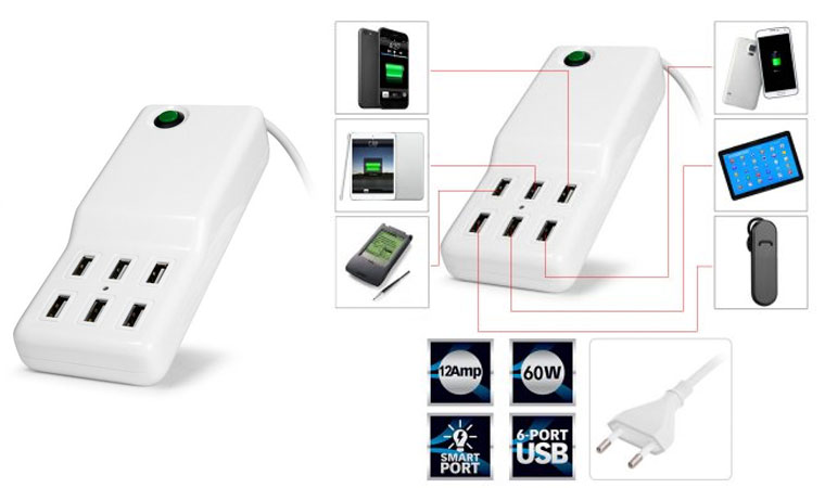 С ростом количества гаджетов в твоем доме ощущается существенный дефицит зарядных устройств. Отличное решение проблемы — этот универсальный девайс. Шесть портов, стандартный штекер для розетки и качественный пластик.