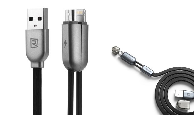 Можно любить iPhone, но всегда найдется гаджет со стандартным micro USB портом. Этот кабель от Remax не оставит без заряда ни один девайс. Спаренный шнур, на конце которого есть и Lightning и micro USB штекер.