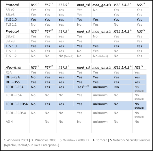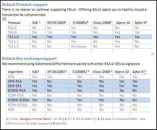 Отчет о степени поддержки в браузерах и http-серверах версий SSL/TLS и шифров