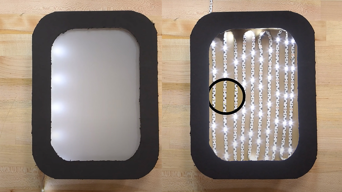 Также инженеры наглядно продемонстрировали разницу между традиционной LED-подсветкой и mini-LED. В первом случае диоды располагаются по бокам внутри корпуса экрана, а во втором прямо под матрицей.