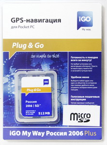 Полюбившаяся всем навигационная программа iGO My way 2006 Plus Россия теперь поставляется на карточках microSD 512 Мб вместо 256 Мб по прежней цене $169. Как и прежде, комплект включает в себя переходники для использования программы на устройствах, содержащих слоты miniSD и SD. Программа iGo завоевала симпатии пользователей благодаря легкости установки, интуитивно понятному меню и дружественному интерфейсу, а также богатой функциональности. Программу iGo Россия можно приобрести в магазинах сети "МакЦентр-Компьютер на ладони" и у дилеров МакЦентра в двух вариантах: по прежней цене $169 на карточке памяти 512 Мб, и по сниженной цене $139 на карточке памяти 256 Мб; также в продаже навигационная программа iGO My way 2006 Plus Европа, включающая карты 32 европейских стран на карточке 1Гб по цене $279.