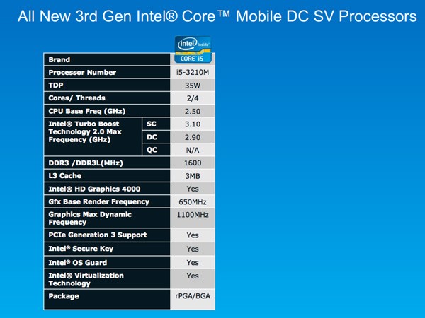 Из четырнадцати представленных процессоров шесть относятся к категории десктопных, а остальные являются мобильными решениями, включая четыре ULV-чипа с пониженным энергопотреблением (обозначены буквой U в конце названия). Кстати, последние вполне могут оказаться в новых ультрабуках, некоторые из которых будут показаны в рамках технологической выставки Computex 2012 на следующей неделе, а в число этих чипов вошли ULV-модель Core i7-3667U (2 ГГц/3,2 ГГц в стандартном и “турборежиме”) с TDP в 17 ватт, а также Core i7-3520M со стандартным энергопотреблением (2,9 ГГц/3,6 ГГц).