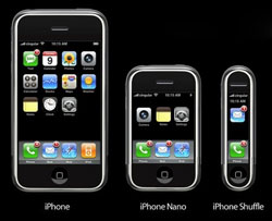 Некоторые аналитики предполагают, что компании Apple придётся представить несколько моделей iPhone для того чтобы обеспечить новому продукту такую же популярность как и у iPod. Более 100 млн. проданных плееров это результат грамотной маркетинговой политики и выпуска моделей всех ценовых категорий. Поэтому вполне возможно появление упрощённого аппарата iPhone Nano или Shuffle. В мировой сети даже появились шуточные изображения подобных новинок. Учитывая хорошую функциональность iPhone, выпустить упрощённую версию не составит особо труда, другое дело, будет ли пользоваться популярностью iPhone, скажем с 1Гб встроенной памяти и без фотокамеры. Также существует мнение, что оригинальный iPhone премьера которого запланирована на конец этого месяца, является далеко не самым оснащённым вариантом.