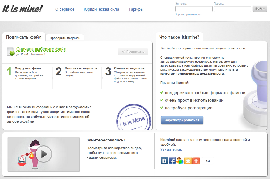 Сайт дня: Itismine - электронная подпись под авторским правом
