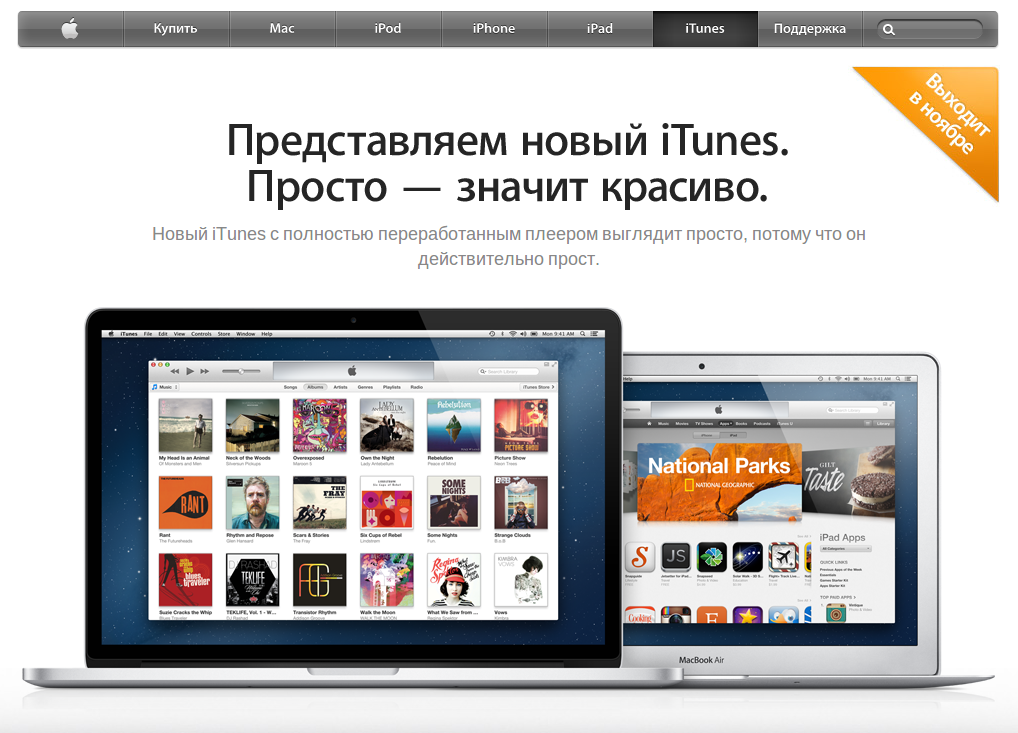 Похоже, не у одной Microsoft случаются досадные накладки в ходе дебюта фирменных решений. Недавно стало известно, что iTunes 11, релиз которого ожидался в октябре, увидит свет лишь в следующем месяце. Об этом свидетельствует баннер на страничке официального сайта Apple, посвященной данному продукту, и это же подтвердил CNET представитель компании из Купертино Том Ньюмайр (Tom Neumayr), заявивший, что одиннадцатая редакция iTunes со всеми своими “плюшками” станет доступной в ноябре, точнее "до конца ноября".