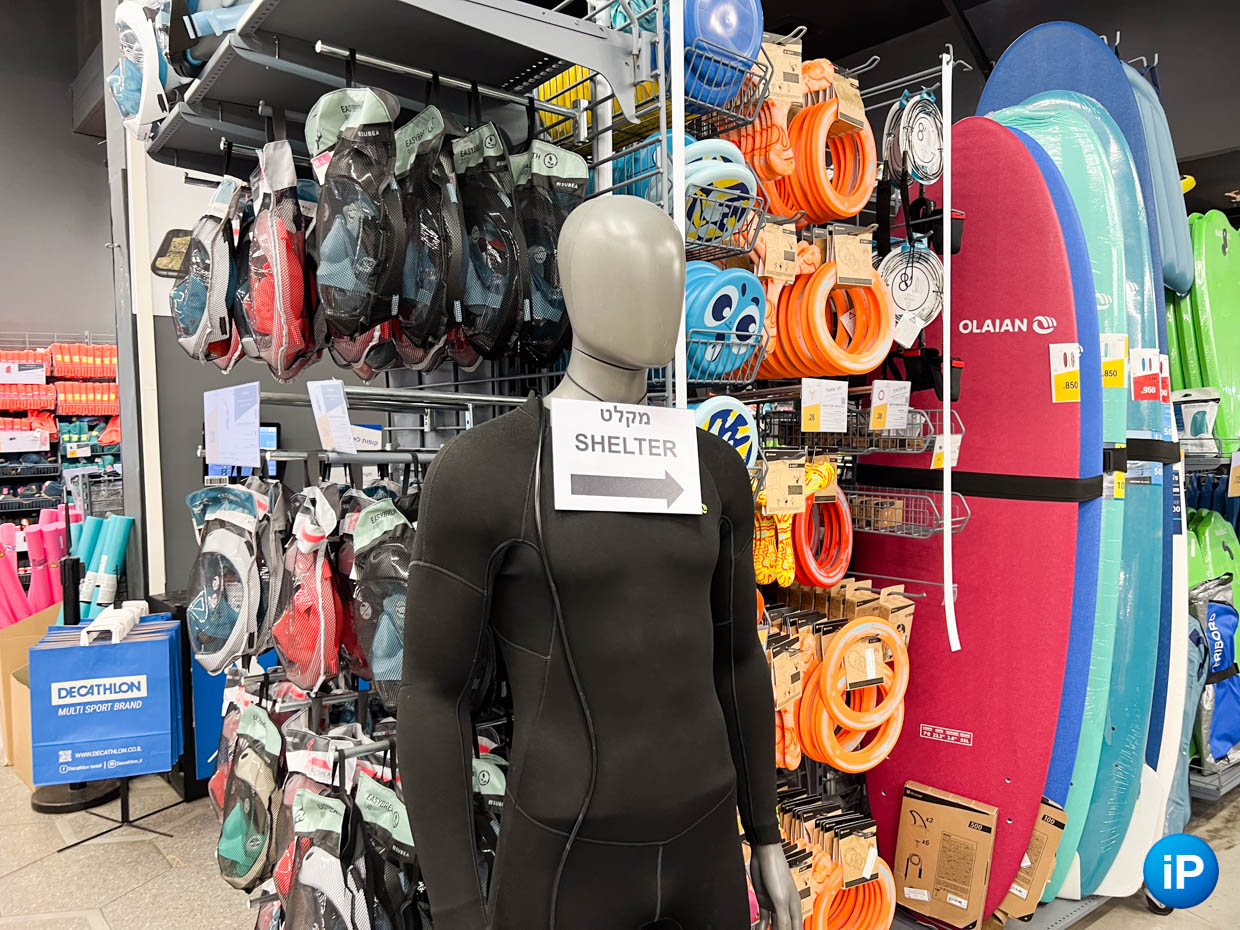 В декатлоне указатель к укрытию на видном месте