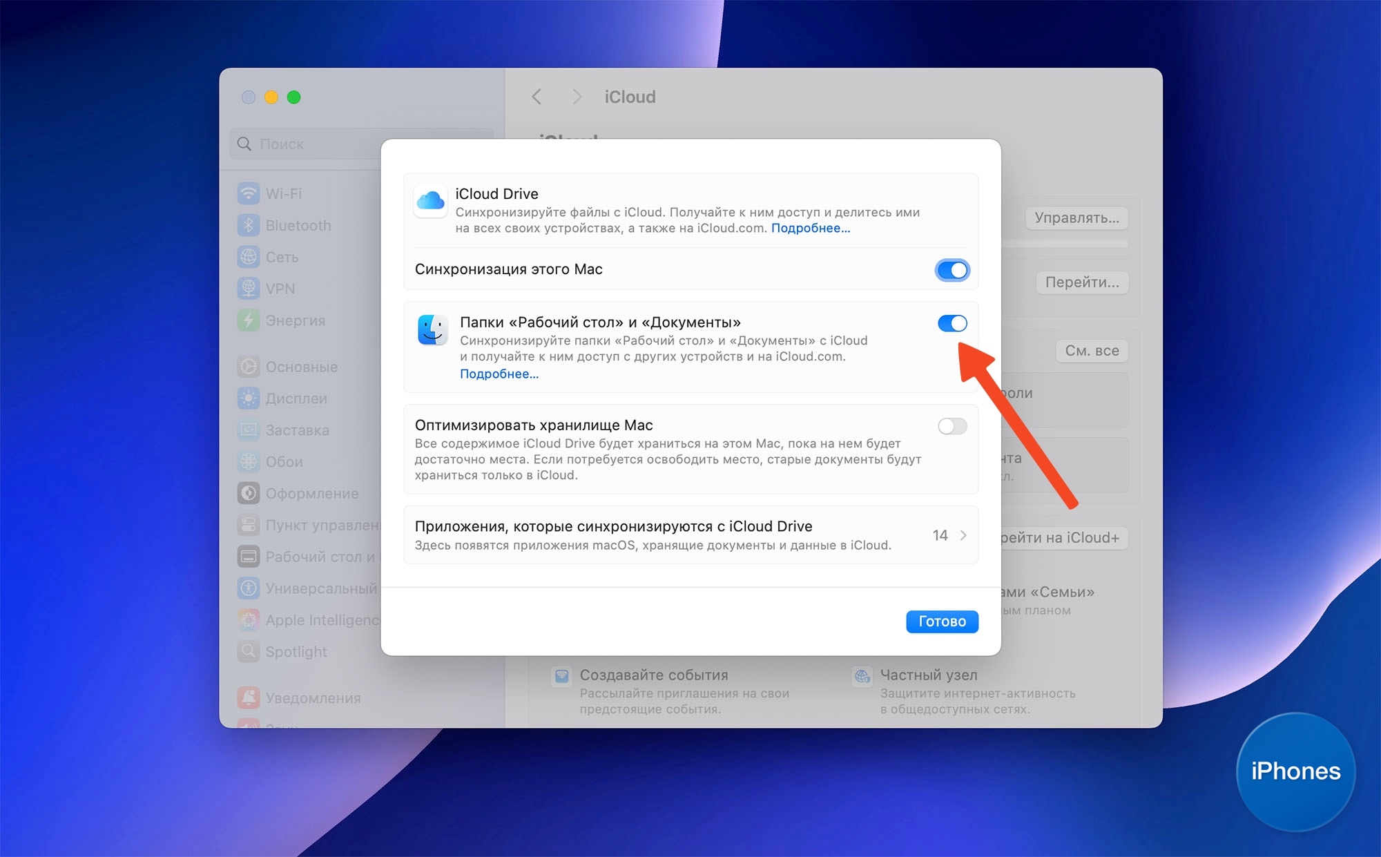 1. На Маке включите синхронизацию папок Документы и Рабочий стол по пути Системные настройки — Аккаунт Apple — iCloud — iCloud Drive.