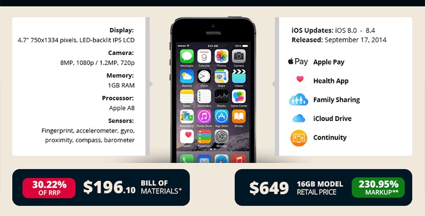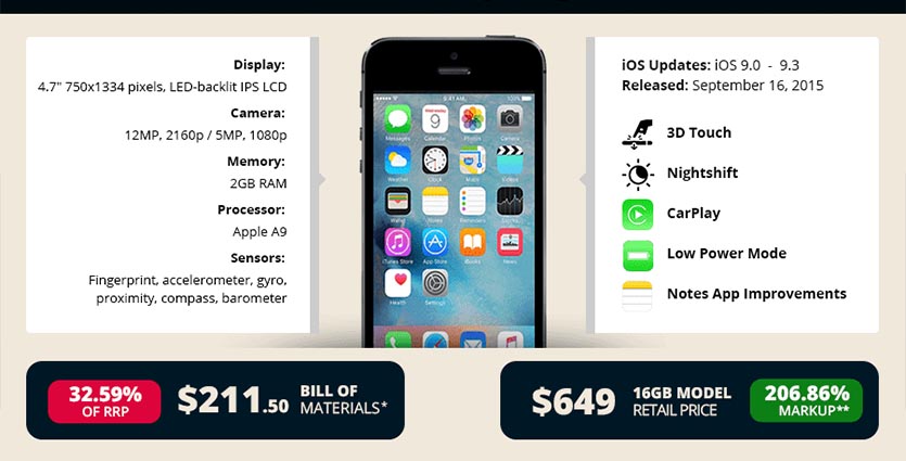 Чем запомнился: удачным маркетингом Apple. Продавать в 2015 году смартфон в дизайне 2012 года не у всех получится.