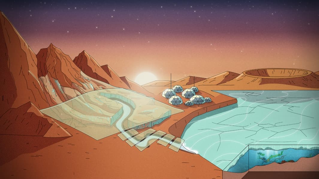 Первый этап — создание герметичных куполов из материалов вроде аэрогеля. Они пропускают солнечный свет, но удерживают тепло, позволяя формировать «оазисы» на поверхности. Под такими куполами может таять подповерхностный лёд, обеспечивая воду для баз и потенциально — условия для простых форм жизни.