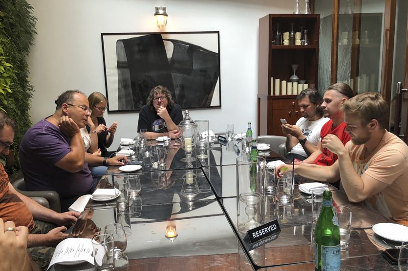 Во время обеда получаем инструкции на следующие дни, в частности время выезда на презентацию, сколько будет времени на тестирование новинок, когда трансфер обратно в отель и время ужина.