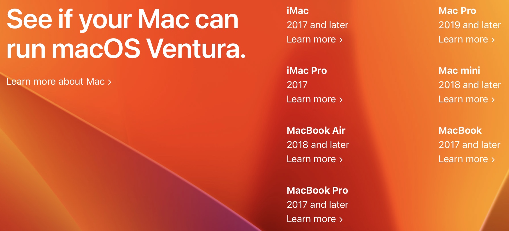 Компания уже опубликовала список Mac, совместимых с macOS Ventura: