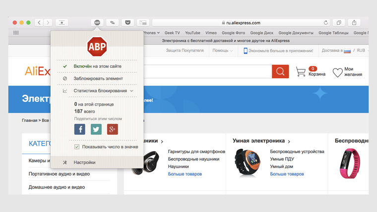 Навязчивые рекламные предложения не могут не раздражать, поэтому с такими ресурсами, пусть меня простят их создатели, я использую Adblock Plus — расширение Safari, которое блокирует рекламу практически полностью.