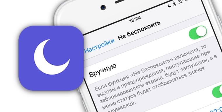 Этот режим включается из меню Настройки — Не беспокоить или через соответствующую кнопку в контрольной панель, которая вызывается в любом месте системы свайпом снизу.