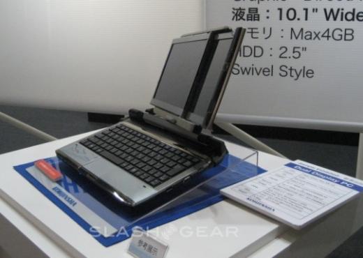 Японская компания Kohjinsha на выставке CEATEC 2009 представила прототип ноутбука с двумя 10,1-дм экранами. Когда ноутбук закрыт, то один экран располагается позади другого. В открытом состоянии экраны можно раздвигать в стороны, значительно увеличивая полезную площадь. Каждый экран обладает разрешением 1,366 x 768 пикселов соответственно. Устройство построено на базе процессора AMD Athlon MV-40 с тактовой частотой 1,6 ГГц, обладает 2,5-дм жестким диском SATA, 4 ГБ DDR2 RAM и работает под управлением ОС Windows 7 Home Premium. Ко всему прочему, несмотря на 2 экрана, устройство не слишком громоздко: вес 1,8 кг, толщина в закрытом состоянии – 4,3 см.