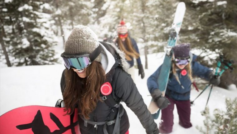 Можно устроить «конференц-связь» для всей компании при спуске с горы на сноубордах.