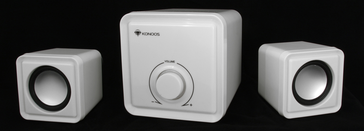 Компактная акустическая система Konoos KNS-T100 с питанием от USB-порта подходит для использования с ноутбуком или нетбуком. Новинка выполнена в минималистическом дизайне и представлена в двух цветовых решениях — чёрном и белом. На сабвуфере под ручкой управления предусмотрена мягкая подсветка зелёного цвета. Суммарная выходная мощность системы составляет 10 Вт, диапазон воспроизводимых частот – от 40 Гц до 18 кГц. При весе устройства 1,51 кг размеры сателлитов — 86 х 86 х 91 мм, сабвуфера — 135 х 135 х 140 мм.