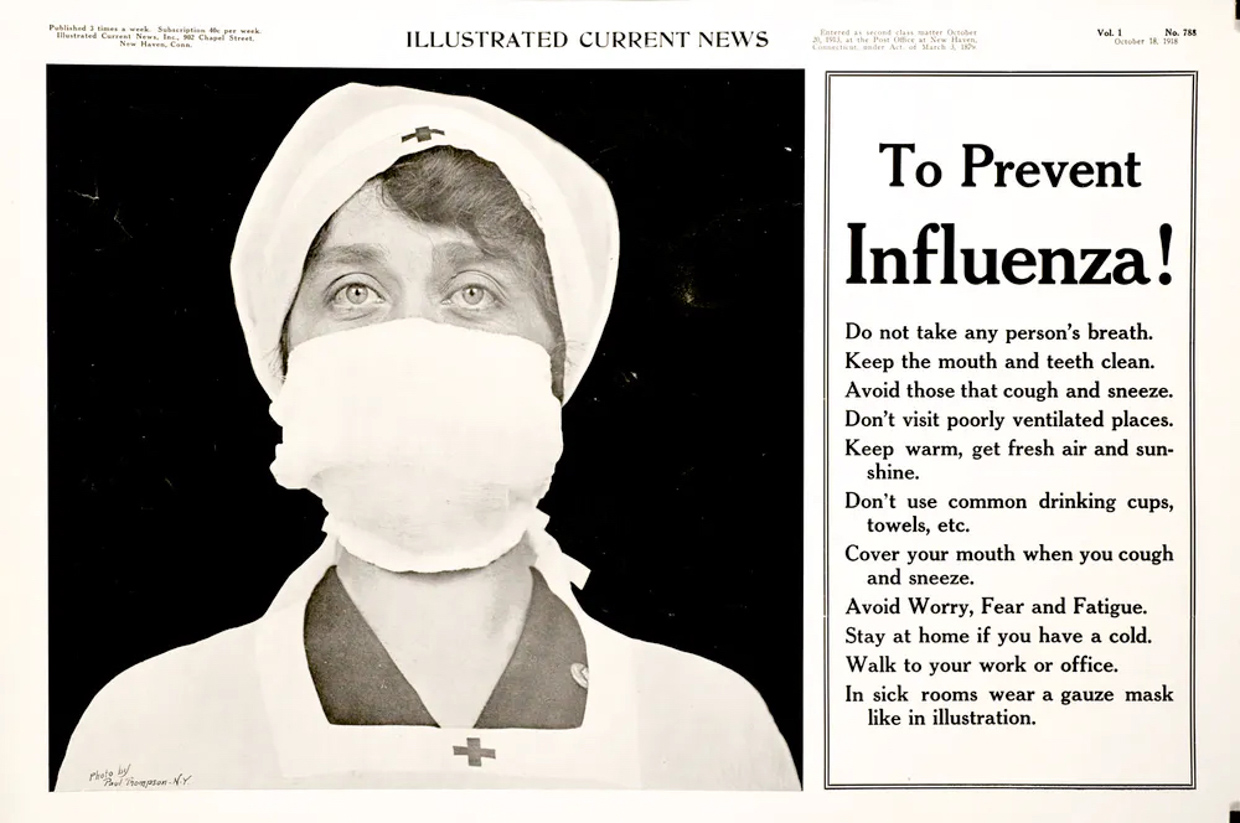 Кажется страшным совпадением, что сто лет назад по всему миру прошла последная до COVID-19 пандемия, из-за которой всех заставляли носить маски, избегать общественных заведений и серьёзно тревожиться из-за симптомов простуды.