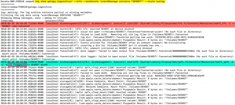 log stream -info -predicate «eventMessage contains «newfs_»