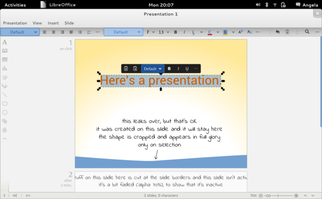 Разработчики LibreOffice приступили к обсуждению возможности по интеграции в проект некоторых наработок инициативы Citrus UI, авторы которой представили несколько идей по улучшению и упрощению интерфейса офисного пакета. Идеи касаются реорганизации размещения управляющих элементов, упрощения создания презентаций, добавления панели для быстрого добавления элементов и полноценной поддержки слоёв в редактор изображений, оптимизации элементов навигации, переработки организации меню, реализации всплывающих панелей и контекстно-зависимых тулбаров, изменения формы выбора шрифтов и поддержки внешних репозиториев открытых шрифтов.