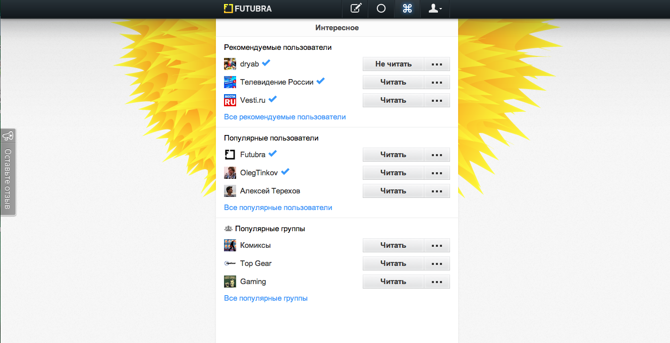 Я бы мог мог еще много рассказать о футубре, но, я думаю, вы уже неоднократно все это читали. Пока что это «ни рыба ни мясо», никому не нужный куцый клон Tumblr. С претензией на мегаконцепцию.