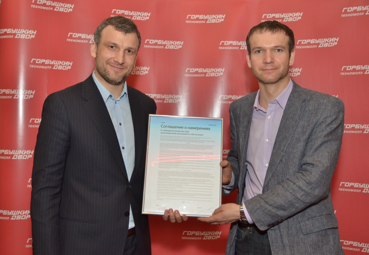 Сегодня техномолл «Горбушкин двор» и компания Microsoft подписали соглашение «О соблюдении авторских прав производителей программного обеспечения». Администрация техномолла публично заявила о своем намерении сотрудничать с компанией Microsoft для предотвращения продажи контрафактного ПО на территории торгового комплекса.