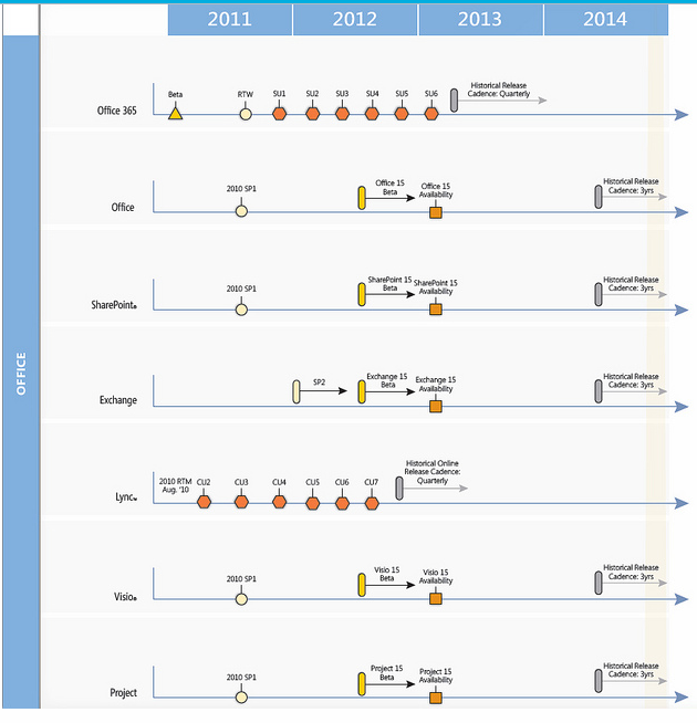 Источник опубликовал скриншоты, как утверждается, роадмапа Microsoft, содержащего подробности о планах редмондской корпорации на ближайшую перспективу, включая ориентировочные сроки выпуска некоторых ключевых продуктов. Согласно приводимым сведениям, к примеру, новый браузер Internet Explorer 10, обещающий улучшенную поддержку HTML5 и прочие “плюшки”, в том числе повышенную производительность, появится примерно в то же время, что и ожидаемый дебют Windows 8 Release Candidate.