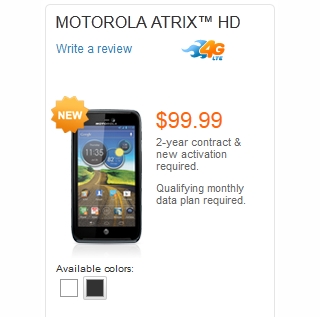 Вчера на рынке США дебютировал смартфон Motorola ATRIX HD, который предлагается ритейлерами Amazon и Best Buy по цене 99,99 и 49,99 доллара соответственно (последний вариант предложен при условии подписания контракта сроком на два года). Напомним, что ATRIX HD является новейшим смартфоном от компании Motorola. Устройство оборудовано 4,5-дюймовым LCD-дисплеем на 720p, 2-ядерным вычислительным устройством Qualcomm Snapdragon S4 с тактовой частотой 1,5 ГГц, 8-мегапиксельной камерой с возможностью записи 1080p-видео, внутренним накопителем объемом 8 Гб (возможно расширение памяти), LTE-соединением и аккумуляторной батареей на 1780 мАч. Толщина влагозащищенного корпуса ATRIX HD составляет всего 8,4 мм, а задняя крышка покрыта кевларом. Смартфон предлагается в двух цветах: Titanium и Modern White.