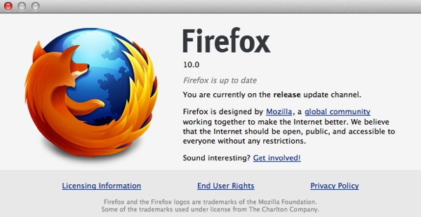 Помимо прочего, в версии для Mac OS X исправлена проблема, приводящая к серьезному сбою, а в мобильном Firefox 10 для Android добавлено аппаратное ускорение слоев путем использования OpenGL ES. Настройка синхронизации посредством Firefox Sync стала еще легче и осуществляется при помощи ссылки "Настройка синхронизации" на Домашней вкладке, кроме того, в мобильную версию также добавлена поддержка сглаживания для WebGL-графики, а скачать Firefox 10 можно на сайте Mozilla. Анонсирована и версия ESR (Extended Support Release) для корпоративных пользователей, дающая возможность загружать лишь обновления для системы безопасности.