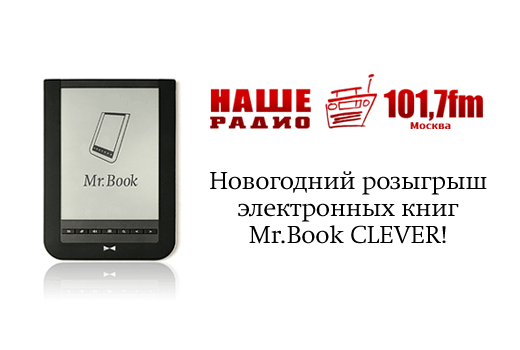 Компания МакЦентр совместно с радиостанцией “Наше Радио” в декабре разыгрывает 19 электронных книг Mr.Book Clever. Розыгрыш проводится в рамках “Утреннего шоу”, идущего по будням с 7 до 11 часов утра. Подробная информация и правила розыгрыша на сайте “Нашего Радио” Играйте и выигрывайте! Электронная книга Mr.Book Clever может стать отличным подарком для Вас к Новому Году.