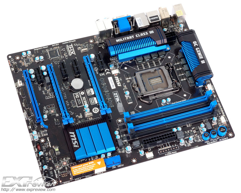 Материнская плата MSI Z77A-GD55 на базе Intel Z77 позирует на фото