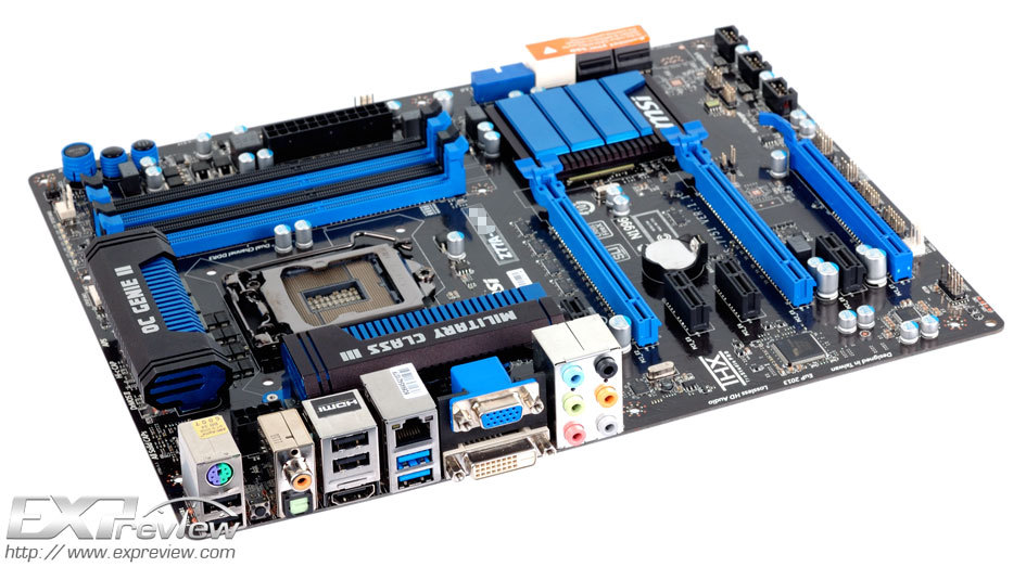 Питание CPU обеспечивается по 9-фазной схеме, а сама материнская плата несет на борту два слота расширения PCI-Express 3.0 x16 (x8/x8) плюс один PCI-Express 2.0 x16 (электрически х4) и четыре PCIe x1. Кроме того, MSI Z77A-GD55 сможет предложить пользователю два порта SATA 6.0 Gbps и четыре SATA 3.0 Gbps и в общей сложности четыре разъема USB 3.0 плюс видеовыходы DVI, D-Sub и HDMI.