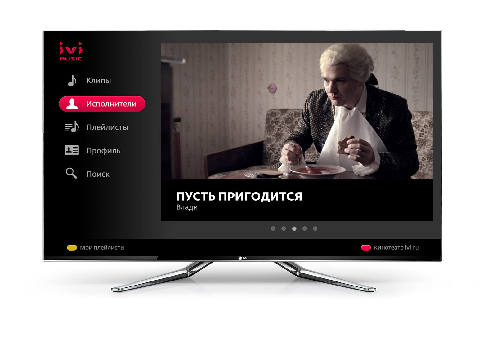 Популярный в России интернет-кинотеатр ivi.ru и компания LG Electronics объявляют о запуске музыкального сервиса music.ivi.ru на телевизорах LG с технологией Smart TV. music.ivi.ru станет первым музыкальным видеосервисом, доступным на подобных устройствах в России.