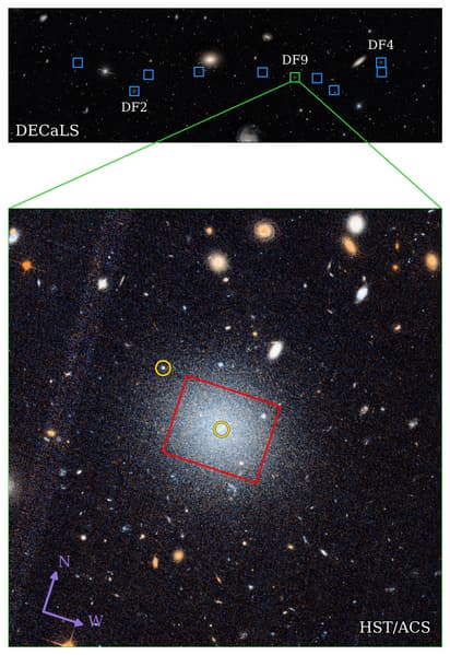 Астрономы из Йельского университета обнаружили третью галактику, практически лишённую тёмной материи, что подтверждает теорию о «жестоких космических столкновениях». Галактика NGC 1052-DF9 (DF9), расположенная в созвездии Кита, стала частью уникальной цепочки объектов, включающей ранее найденные DF2 и DF4. Эти галактики бросают вызов стандартным космологическим моделям, где тёмная материя считается обязательным компонентом формирования галактик.
