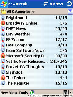 Новозеландский КПК-сайт Geekzone и софтверная компания Ilium Software представили совместный продукт - бесплатное приложение NewsBreak Lite для чтения новостных каналов RSS на устройствах под управлением ОС Windows Mobile Pocket PC и Smartphone. Напомним, что RSS - технология, позволяющая создателям web-сайтов предоставлять новости в виде лент, на которые может подписаться любой желающий. Просматривать содержимое этих "каналов" можно при помощи специальной программы для чтения RSS, такой, например, как NewsBreak Lite. Среди возможностей NewsBreak Lite: - оповещение пользователя, когда заголовки новостей будут содержать указанные им ключевые слова - поддержка как проводного подключения к ПК через ActiveSync, так и беспроводного - автоматическое обновление при подключении через ActiveSync или Wi-Fi. NewsBreak Lite выглядит и работает также, как и полнофунциональная версия этой программы. Единственное ограничение - поддержка максимум пяти RSS лент. Познакомиться с возможностями полной версии NewsBreak можно в разделе "Программы для КПК" на HPCru, а скачать NewsBreak Lite на сайте www.geekzone.co.nz.