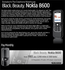 Несмотря на то, что официальной премьеры телефона Nokia 8600 ещё не было, некоторые зарубежные интернет-магазины уже начали принимать предварительные заказы на этот телефон. Соответственно теперь известны все технические характеристики ожидаемой новинки. Начнём с того что предназначена она исключительно для сетей GSM, поддержка WCDMA не предусмотрена. Также подтвердилась информация о том, что в телефоне имеется 128Мб встроенной памяти и не предусмотрен слот под карты памяти. Остальные характеристики такие: QVGA-дисплей (16 млн. цветов), 2-мегапиксельная фотокамера, MP3-плеер, FM-радиоприёмник и Bluetooth-адаптер. Размеры телефона: 107х45х15,7мм. Удивляет немалый вес в 140г. От полного заряда батареи новинка способна проработать до 264 часов в режиме ожидания и до 3,5 часов в режиме разговора. Стоимость Nokia вместе с годовым контрактом оператора составляет $600.