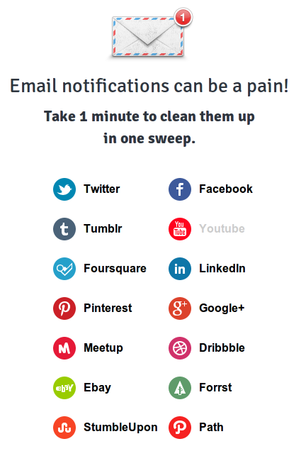 Автоматические оповещения от социальных сайтов - это, вероятно, самые редко читаемые тексты в сети после пользовательских соглашений. Почти все пользователи удаляют оповещения не читая, на них натравливают спам-фильтры, а оповещения всё идут и идут. Даже очень авторитетные социальные сайты регулярно бывают назойливее, чем продавцы сувениров на бедном курорте. Во-первых, они по умолчанию подписывают только что зарегистрированного пользователя на кучу своих рассылок, имеющих только одну цель - напомнить пользователю о существовании сайта. Во-вторых, страницу с настройками оповещений принято прятать так далеко, как будто это жалобная книга в универмаге эпохи Застоя. Всё это заставляет пользователя либо страдать от потоков бессмысленного спама, либо долго копаться в недрах настроек каждого сайта, на котором он зарегистрирован.