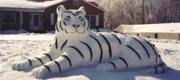 Слепите животных. Например, белого мишку, моржа или ленивого котика. Потом нарисуйте им глаза, зубы и нос цветными красками. И вот, легким движением руки, снежная статуя превращается в живое существо. Такой зверек заставит улыбнуться и вас и прохожих.