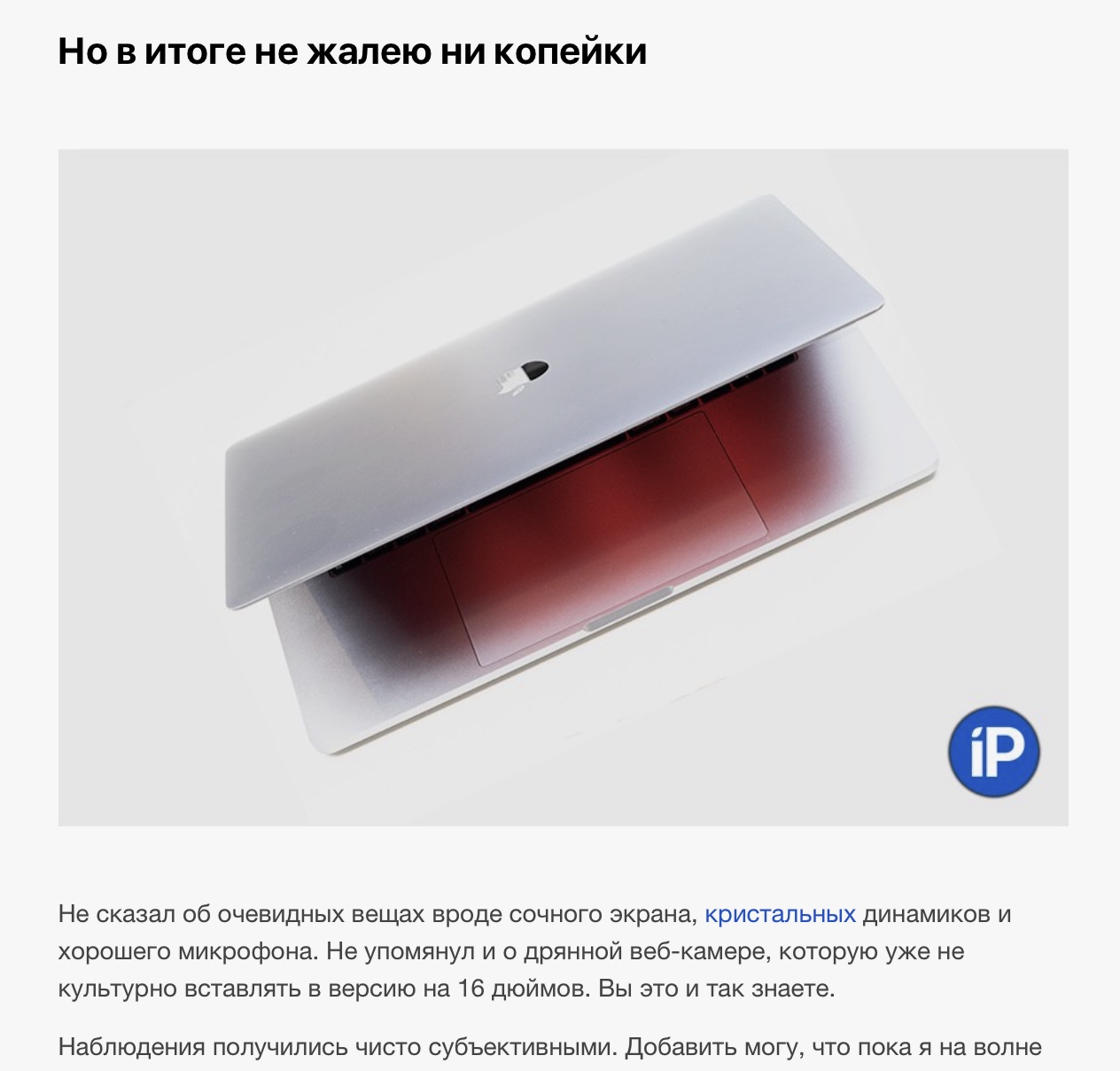 Из моего обзора MBP 15 (2018) сразу после покупки. Забавно, что в этот раз я уже не так впечатлён