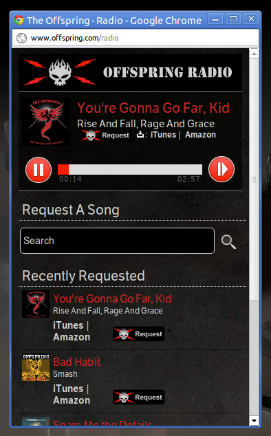 Одним из самых приятных элементов сайта Offspring.com является достаточно удобное встроенное радио, которое вполне можно слушать.