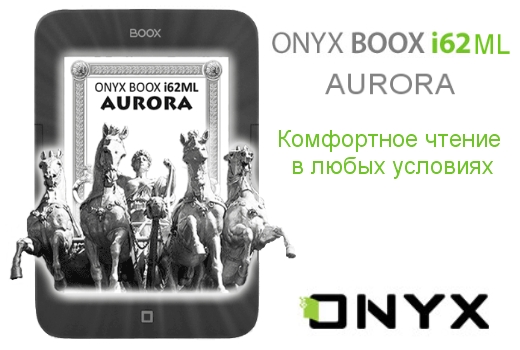 Компания МакЦентр, эксклюзивный дистрибьютор продукции ONYX International на территории России, рада сообщить о появлении ONYX BOOX i62ML Aurora – первой официально представленной на российском рынке модели с экраном E Ink Pearl HD с функцией подсветки экрана MOON Light. С ее появлением у любителей книг появилась возможность одинаково комфортно читать на ярком солнце, в условиях плохого освещения и даже в полной темноте. Новая модель стала первым ридером в линейке ONYX BOOX, на которой установлены словари ABBYY Lingvo. Вначале ограниченная партия новой модели эксклюзивно поступит в продажу в фирменный салон электронных книг ONYX BOOX и интернет-магазин Palmstore.ru. Новая модель ONYX BOOX i62ML Aurora имеет экран типа «электронная бумага», работающий на отраженном свете и обеспечивающий безопасное для глаз изображение, максимально близкое к обычной бумажной странице. В отличие от жидкокристаллических, такой дисплей не «слепнет» на солнце и позволяет читать даже на пляже. А по сравнению с обычными ридерами на «электронной бумаге» ONYX BOOX i62ML Aurora имеет плавно регулируемую подсветку MOON Light, обеспечивающую равномерное мягкое свечение экрана, комфортное для глаз. Эта возможность позволяет использовать ридер в условиях плохого освещения, например, в метро или ночью в постели, не мешая окружающим. ONYX BOOX i62ML Aurora оснащена новейшим 6-дюймовым дисплеем E Ink Pearl HD с контрастностью 12:1 и разрешением 758 на 1024 пикселей. Управление устройством можно осуществлять как при помощи сенсорного инфракрасного экрана с функцией multi-touch, так и за счет двухсторонних кнопок листания, расположенных по бокам экрана. Модель создана на базе высокопроизводительного процессора Freescale i.MX508 с тактовой частотой 800 МГц и имеет встроенный Wi-Fi-модуль, позволяющий выходить в Интернет. ONYX BOOX i62ML Aurora оснащена новейшим 6-дюймовым дисплеем E Ink Pearl HD с контрастностью 12:1 и разрешением 758 на 1024 пикселей. Управление устройством можно осуществлять как при помощи сенсорного инфракрасного экрана с функцией multi-touch, так и за счет двухсторонних кнопок листания, расположенных по бокам экрана. Модель создана на базе высокопроизводительного процессора Freescale i.MX508 с тактовой частотой 800 МГц и имеет встроенный Wi-Fi-модуль, позволяющий выходить в Интернет. ONYX BOOX i62ML Aurora по умолчанию поддерживает рекордное количество различных типов текстовых и графических форматов без необходимости установки дополнительных программ или конвертации файлов и оснащена емким аккумулятором объемом 1600 мАч, позволяющим использовать устройство в течение месяца без дополнительной подзарядки. На борту ONYX BOOX i62ML Aurora имеется 128 оперативной и 8 Гб flash-памяти, что, фактически, избавляет от необходимости использования карт памяти. Впрочем, в устройстве имеется слот для карт памяти объемом до 32 Гб. ONYX BOOX i62ML Aurora поступила в продажу и доступна по рекомендованной розничной цене 8990 рублей. Приобрести новинку можно в фирменном магазине продукции ONYX, а также в интернет-магазине Palmstore.ru.