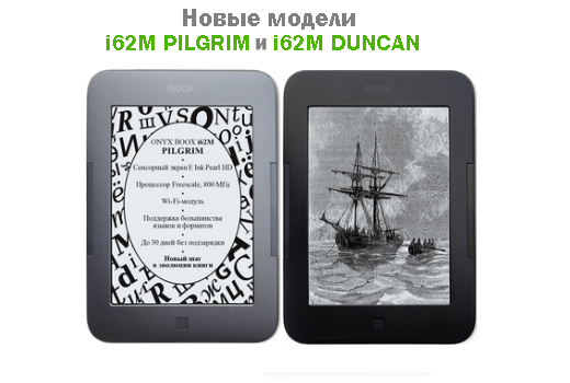 Компания МакЦентр, эксклюзивный дистрибьютор продукции ONYX International на территории России, выводит на российский рынок две новые модели, продолжающие серию, посвященную творчеству Жюля Верна. ONYX BOOX i62M Pilgrim и i62M Duncan являются первыми в мире ридерами с сенсорными экранами E Ink Pearl HD с функцией multi-touch. Они оснащены самыми мощными процессорами, использующимися в настоящее время в электронных книгах, и Wi-Fi-модулем, позволяющим выходить в Интернет через собственный браузер. В новых моделях реализована удобная система управления, позволяющая использовать сенсорный экран и двухсторонние кнопки листания по бокам экрана. Помимо этого они поддерживают рекордное количество различных типов форматов. ONYX BOOX i62M Pilgrim и i62M Duncan оснащены 6-дюймовыми сенсорными инфракрасными экранами E Ink Pearl HD с контрастностью 12:1 и разрешением 758 на 1024 пикселей. Экраны новых моделей имеют антибликовое покрытие. Благодаря функции multi-touch достигается максимальное удобство масштабирования и листания страниц, которое можно осуществлять скольжением пальца по экрану («жестом») или коротким однократным касанием края экрана («тапом»). Помимо этого по бокам экрана расположены двухсторонние кнопки листания, обеспечивающие комфортное управление устройством как одной рукой (правой или левой), так и обеими руками одновременно. Модели созданы на базе высокопроизводительного процессора Freescale i.MX508 с тактовой частотой 800 МГц, самого мощного процессора, используемого в настоящее время в электронных книгах, обеспечивающего максимальную скорость работы устройств. В них также имеется встроенный Wi-Fi-модуль, позволяющий выходить в Интернет и через собственный браузер просматривать сайты, скачивать книги, а также читать почту и новости. ONYX BOOX i62M Pilgrim и i62M Duncan по умолчанию поддерживают рекордное количество различных типов форматов, избавляя пользователей от необходимости доустанавливать дополнительные программы или конвертировать файлы из одного типа в другой. На борту устройств имеется 128 Мб оперативной и 4 Гб flash-памяти. Помимо этого имеется слот для карт памяти объемом до 32 Гб. А емкий аккумулятор объемом 1600 мАч и энергосберегающий режим позволяют в течение месяца использовать устройство без дополнительной подзарядки. ONYX BOOX i62M Pilgrim и i62M Duncan по умолчанию поддерживают рекордное количество различных типов форматов, избавляя пользователей от необходимости доустанавливать дополнительные программы или конвертировать файлы из одного типа в другой. На борту устройств имеется 128 Мб оперативной и 4 Гб flash-памяти. Помимо этого имеется слот для карт памяти объемом до 32 Гб. А емкий аккумулятор объемом 1600 мАч и энергосберегающий режим позволяют в течение месяца использовать устройство без дополнительной подзарядки. Напомним, ранее в этой серии уже появились три модели – i62 Nautilus, i62M Albatros и i62M Dream. Серия посвящена творчеству Жюля Верна и устройства серии носят имена кораблей из произведений писателя. Все модели, входящие в эту серию, выполнены в компактных корпусах, оснащены 6-дюймовыми ИК-экранами с функцией multi-touch и позволяют выходить в Интернет благодаря встроенному Wi-Fi-модулю. В ближайшем будущем в серии ожидается еще несколько моделей. Электронную книгу ONYX BOOX i62M Pilgrim можно приобрести в интернет-магазине Palmstore.ru по цене 7990 руб., электронная книга ONYX BOOX i62M Duncan появится в продаже в ближайшее в