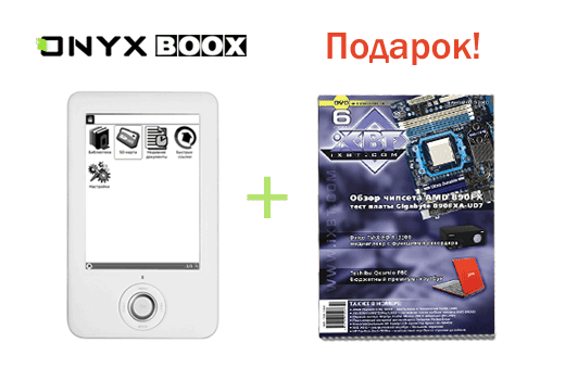 Компания МакЦентр и журнал iXBT сообщают о проведении совместной акции. Теперь, покупая электронную книгу Onyx Boox 60 или Onyx Boox 60S, Вы сможете получить свежий номер журнала iXBT в подарок. Напомним что Onyx Boox – электронные книги второго поколения, отличающиеся высоким качеством, стильным дизайном и широким набором функций. Цена в Интернет-магазине электронных книг, коммуникаторов и GPS-навигаторов www.palmstore.ru составляет 12890 руб. за Onyx Boox 60 и 9990 руб. за Onyx Boox 60S