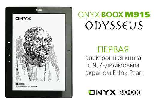 Компания МакЦентр, эксклюзивный дистрибьютор продукции ONYX International на территории России, представляет модель ONYX BOOX M91S Odysseus, открывающую новую «античную» серию электронных книг премиум-класса. ONYX BOOX M91S Odysseus является первым официально представленным в России устройством для чтения электронных книг, оснащенным экраном E-Ink Pearl с диагональю 9,7 дюйма, и первой в мире электронной книгой, контрастность экрана которой достигает соотношения 12:1. Для сравнения, все еще распространенные в настоящее время экраны E-Ink Vizplex имеют контрастность всего лишь 7:1, а единственная подобная электронная книга с экраном E-Ink Pearl с такой же диагональю – 10:1. Экран ONYX BOOX M91S Odysseus имеет разрешение 1200 х 825 и способен отображать 16 градаций серого цвета. Большой дисплей с высокими четкостью и контрастностью изображения идеально подходит для всех, кто привык получать максимальный комфорт при чтении, особенно технической и учебной литературы, а также при просмотре графических файлов и иллюстраций. Стало удобнее работать с документами в формате DOC, наиболее заметны преимущества при чтении файлов PDF и DjVu. Особый интерес ONYX BOOX M91S Odysseus может представлять для родителей, заботящихся о здоровье своих детей, так как технология «электронных чернил», реализованная в лучшем на данный момент экране, позволяет сделать процесс чтения электронной книги идентичным чтению обычной бумажной книги. При этом отпадает необходимость в тяжелом портфеле и трате денег на дорогостоящие учебники. А использование высокотехнологичного устройства способно привлечь большее внимание детей к учебному процессу. У экрана с антибликовым покрытием отсутствует мерцающая подсветка, а сам дисплей защищен обрамляющей металлической рамкой и дополнительной металлической пластиной, расположенной за экраном. Значительно улучшено в новой модели и управление устройством. В ONYX BOOX M91S Odysseus оно стало еще удобней за счет сенсорных кнопок и инфракрасного джойстика. Электронная книга реализована на базе самого производительного для подобного рода устройств процессоре с тактовой частотой 800 МГц, способного обеспечить оптимальную работу со сложными документами. В ONYX BOOX M91S Odysseus имеется 128 Мб оперативной и 2 Гб встроенной памяти, а слот расширения позволяет использовать карты памяти различных форматов объемом до 32 Гб. Свойства экрана и мощного процессора в сочетании с используемым литиево-ионным аккумулятором позволяют устройству работать в автономном режиме до месяца. Новая модель, имеющая элегантный дизайн и выполненная в черном и белом цветовых решениях, уже поступила в продажу и доступна по рекомендованной цене 11 990 рублей в Интернет-магазинах и 12 990 рублей в розничных точках продаж. Приобрести новинку можно в Интернет-магазине коммуникаторов, GPS-навигаторов и электронных книг www.palmstore.ru, а также в магазине iStyle.