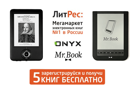 Компания МакЦентр делает очередной подарок покупателям электронных книг ONYX BOOX и Mr.Book. Теперь каждая книга данных марок, поставленная через официальный канал, будет комплектоваться карточкой подписки ЛитРес на бесплатное скачивание 5 электронных книг. Компания ЛитРес является продавцом лицензионных электронных книг №1 в России, на их сайте доступны более 45000 книг в 14 форматах. Данный шаг направлен на повышение культуры чтения качественной литературы, полученной легальным путем. Приобрести электронные книги ONYX BOOX и Mr.Book можно в магазинах таких крупных сетей электроники как М-Видео, Евросеть, Связной, Полярис, МедиаМаркт и др. , а также в Интернет-магазине коммуникаторов, GPS-навигаторов и электронных книг www.palmstore.ru.