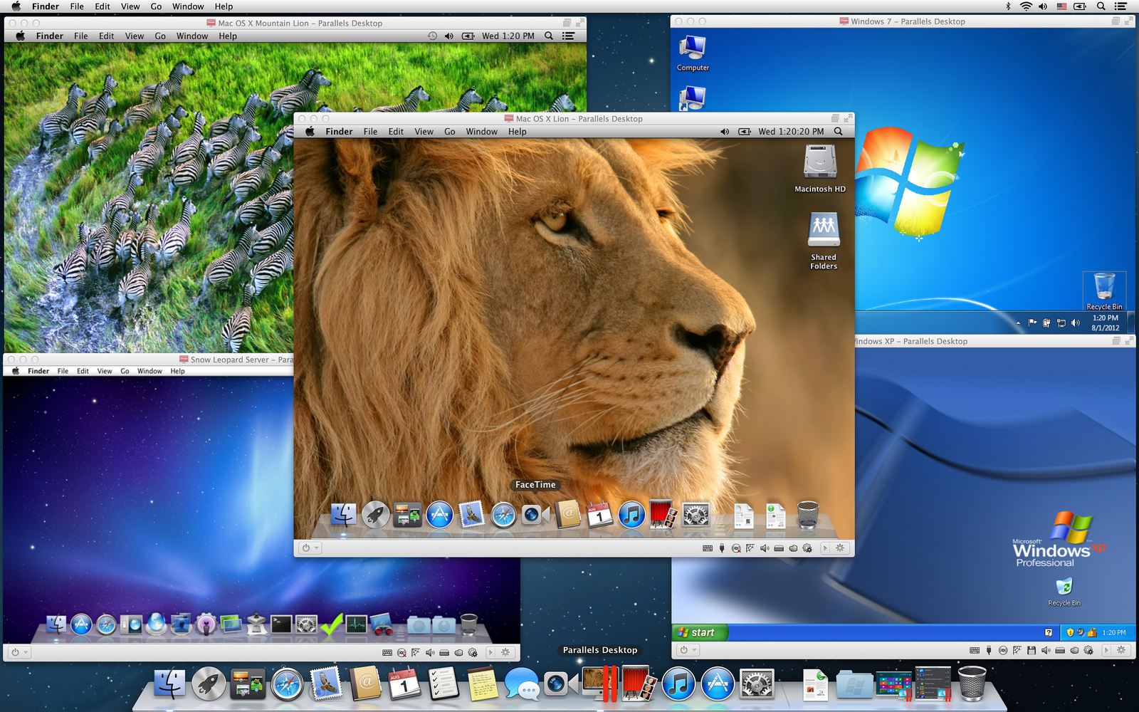 Parallels Desktop 8 для Mac создана, чтобы поддержать две самые совершенные на данный момент операционные системы – уже вышедшую Mac OS X 10.8 Mountain Lion от Apple и Windows 8 от Microsoft, которая ожидается 26 октября 2012 года. Как обещают разработчики, Parallels увеличивает производительность гостевых ОС как в оконном режиме отображения, так и в режиме Coherence.