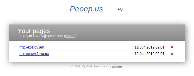 Вот, так выглядит свежий снапшот списка моих страниц на самом Peeep.us: