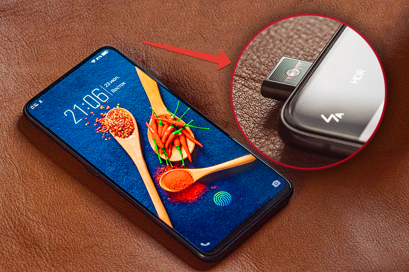 Особенный шик — выдвижная камера. Но, увы, она не уникальна: ранее подобный механизм уже выпускали А-бренды, а сегодня ее можно встретить в братьях-близнецах OnePlus 7 Pro от Vivo и OPPO.